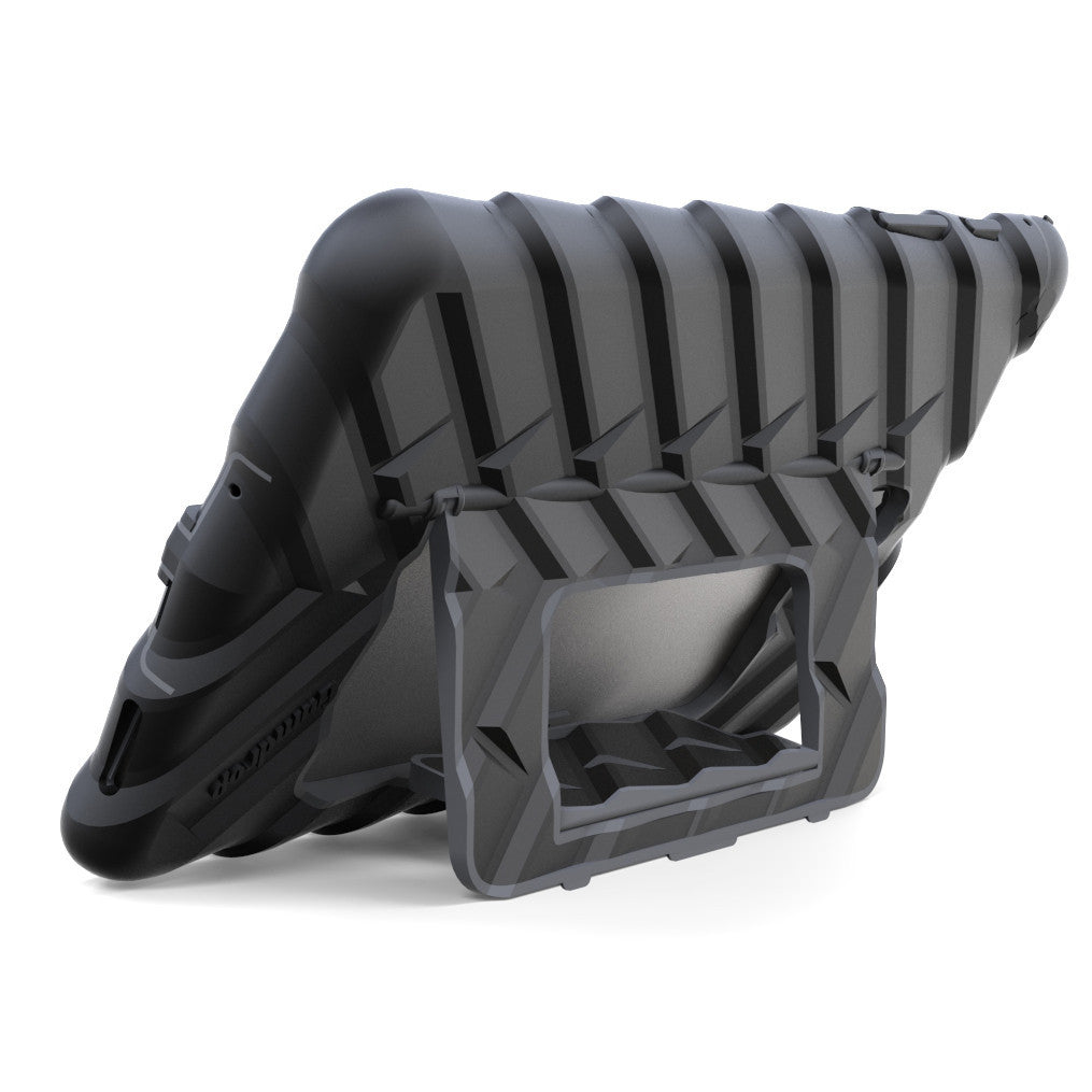 Finally, a super protective case with stand, without compromise. The HideAway features a proven rugged design with a disappearing stand. The stand ingeniously hides away into the easy grip rubber pattern, and can easily be engaged with a flip and a click. The HideAway supports two use angles; viewing mode and typing mode.