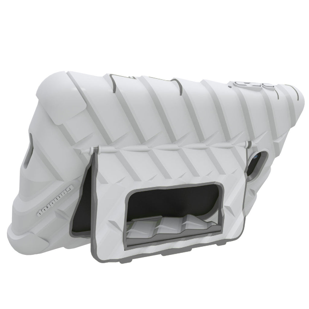 Finally a super protective case + stand without compromise. The HideAway features a proven rugged design with a disappearing stand. The stand ingeniously hides away into the easy grip rubber pattern, and can easily be engaged with a flip and a click. The HideAway supports two mode; viewing mode and typing mode.
